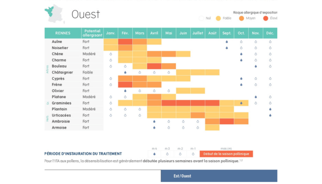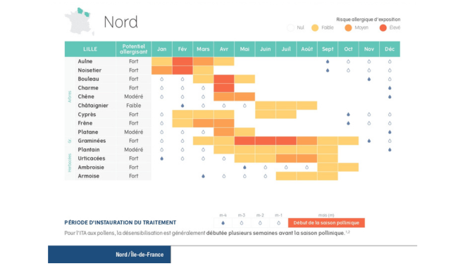 Ce calendrier est élaboré sur la base des donnée du RNSA (Réseau National de Surveillance Aérobiologique)